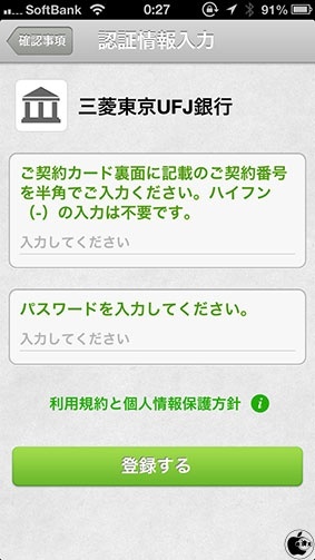 その後、三菱東京UFJ銀行や三井住友銀行など、使用している銀行のオンラインバンクIDとパスワードを入力します。