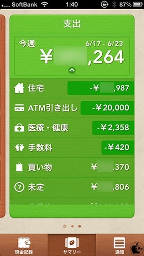 細かい家計簿記録ではなく、ざっくり分かれば良い人に向いているアプリだと思います。