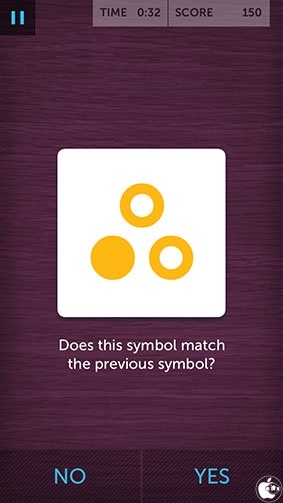 最初に表示された図形と後に表示された図形が同じか否か?、2列の算数で合計が大きい方はどちらか?(同じも含む)といった簡単な内容を、制限時間内にどれだけ回答出来たかを競います。