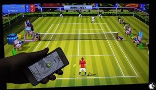 iPhoneをラケットとして、Apple TVを使って遊ぶモーションテニスゲームアプリ「Motion Tennis」を試す