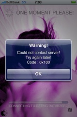 第3者が、このiPhone 3Gを手にして、このアプリを起動すると、出会い系へのアクセスを促すような動きをする表示がされ、出会い系サイトにアクセス出来なかったので、再度起動して欲しいといったアラートが表示されます。
