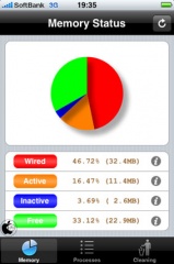 アプリを起動すると、iPhone/iPod touchのメモリ状態を円グラフで確認することが出来ます。