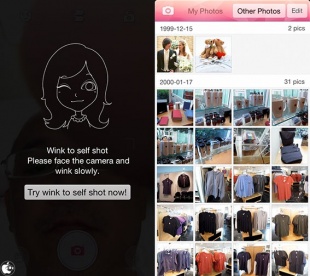 カメラは、左上の顔マークをタップすると、ウインクすることでタイマー撮影を行うことが可能になっています。