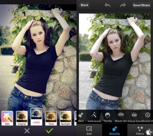 肌補正、スリム顔補正、眼補正、クマ補正などポートレート系編集機能が充実したアプリです。