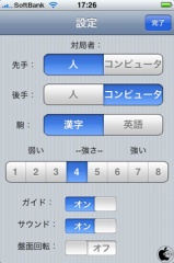 設定では、先手/後手、駒の表記、コンピュータの強さなどを変える事が出来るようになっています。
