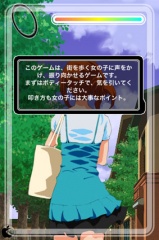 ヒルズや商店街、下町など、街を歩く女の子に声をかけ、快く振り向いてくれればクリアというゲームで、頭、両肩、背中の4ヶ所に振れて相手の気を引き、決め台詞で振り向いてもらいます。