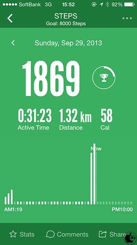 アクティブタイム、移動距離、消費カロリーなどを知る事が出来ます。