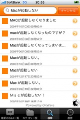 2008年12月22日(月) iPhone App Store#iPhone_3G#OKWave Q&Aサイト検索アプリ「OKWave」を試す ※本サイトは、アフィリエイト広告および広告による収益を得て運営しています。購入により売上の一部が本サイトに還元されることがあります。 OKWave オウケイウェイヴが、iPhone用OKWave検索アプリ「OKWave」を、App Storeにて無料配付を開始していたので試してみました。 OKWaveとは、投稿型のQ&Aサイトで、1,700万件以上のQ&Aコンテンツは約130万人の会員ユーザをはじめ、毎月4,100万人以上の閲覧ユーザに利用されているそうです。 カテゴリは、PCサイト版と同じで、カテゴリを絞りながら、自分が知りたいQ&Aを見つけ出します。 このアプリは、やはり知りたいQ&A情報を検索して探し出せるのがポイントで、アバウトな検索キーワードでも、探し出したい情報を探し出してくれます。 ↓の評価ボタンを押してランキングをチェック!