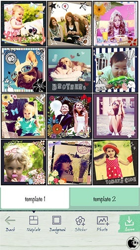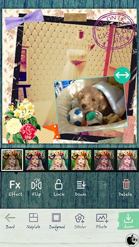 テンプレートから好きなデザインをタップすると、写真の傾き、スタンプ、フレーム、背景などが自動的に編集されます。