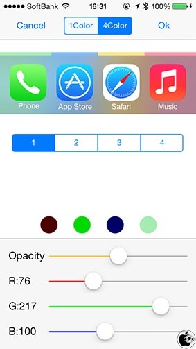 iOS 7のステータスバーとドックのカラーを変更することが出来る壁紙を作成するアプリです。