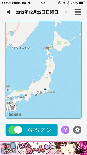 GPSスイッチをオンにすることで、GPSを用いた移動ルートのトラッキングを行う事が出来ます。