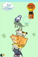 バランスが崩れると、猫達がバラバラになり、積み上げられた猫の高さが記録されます。