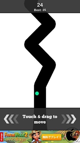ゲーム自体は簡単で、画面上に表示される道路に沿って、画面下のスライドエリアで、指を左右に動かすだけです。