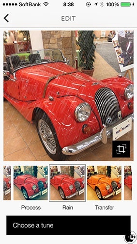 写真は、カラーフィルター編集に加えて、雨や虹といったシーンテンプレートを重ねることも出来ます。