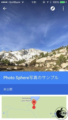 Googleが、iPhone用360度カメラアプリ「Photo Sphere Camera」を、App Storeにて無料配布を開始しています。