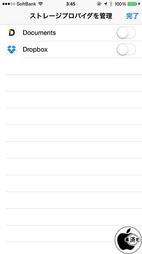 ストレージプロバイダを管理で、DocumentsやDropboxなどと連携する事も可能です。