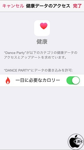 このDance Partyアプリは、iOS 8のヘルスケアアプリに対応していて「一日に必要なカロリー」項目にデータを書き込みすることが可能となっています。