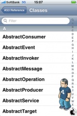 Mike Chambersが、iPhone/iPod touch用ActionScript 3 APIリファレンスアプリ「AS3 API Reference」を、App Storeにて無料配していたので試してみました。