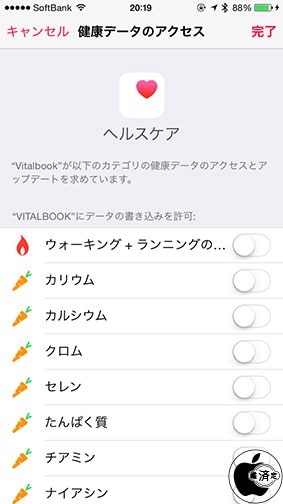 iOS 8の「ヘルスケア」は、カルシウム、たんぱく質、ビタミン群など、細かい栄養摂取状況を記録することが出来ます。