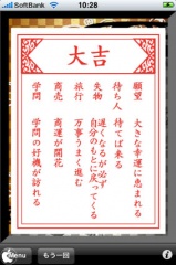 おみくじをタップし、本体を振ると、おみくじが表示される機能も装備されています。