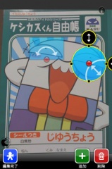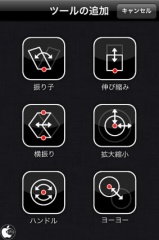編集モードの状態で、緑色のボタンをタップすると、「振り子」「伸び縮み」「横振り」「拡大縮小」「ハンドル」「ヨーヨー」という6種類のツールが表示されるので、その中から好きなツールを選択し、動かしたい場所に配置します。