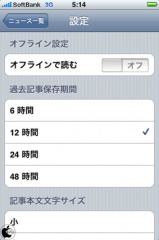 設定では、記事をオフラインで読む設定や、過去記事の保存時間、本文記事の文字サイズなどを調整することが出来るようになっています。