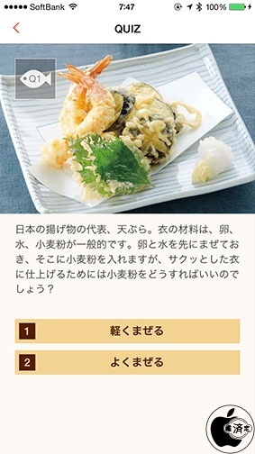 アプリ内にある、日本の食に関するクイズ「GOURMET QUIZ」を楽しむと、そのクイズのレシピが入手することが出来ます。