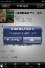 電話をタップすると、iPhone 3Gからお店に電話をすることもできます。