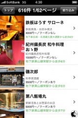 ウェブインパクトが、iPhone用ぐるなび検索アプリ「Touch de ComoComo」を、App Storeにて無料配付を開始していたので試してみました。