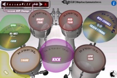 このアプリには、練習用曲として、ロックを中心にした18曲が収録されていて、画面左上のLesson Riffをタップすると曲が流れ、タップを続けると曲が変わります。