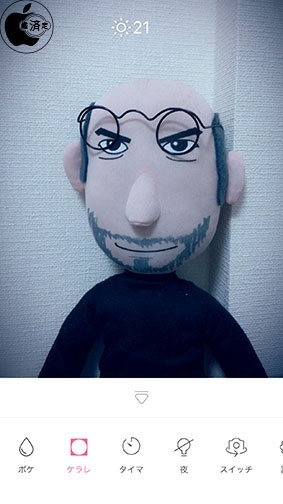 画面下にある三角ボタンをタップすると、ボケ調整、ケラレ追加、タイマー、夜撮影モード、カメラ切り替えが可能です。