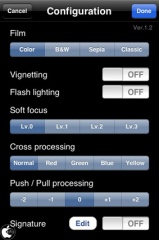 ソフトフォーカス、色温度(Cross proccessing)、増感/減感(Push/Pull proccessing)などのレベルも用意されています。
