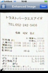 iPhone 3Gのカメラでレシートなどを撮影するか、写真ライブラリから補正したい物が写った写真を選択します。