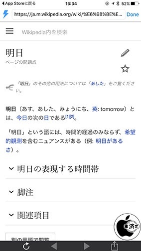 Wikipediaをタップすると、ウィキペディア内を検索することが出来ます。