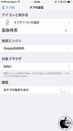 例えば、Google画像検索を指定し、Safariで表示するといったことを指定することが出来ます。