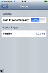 iPhone OSの設定>Skypeで、Skypeアプリを起動すると同時にログインするかを切換えることが出来ます。