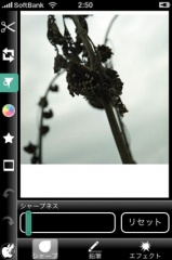 ロートアイコンをタップすると、シャープネス効果がかけられます。
