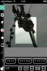 ハサミアイコンをタップすると、写真のトリミングを行なう事が出来ます。