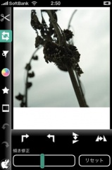 傾き補正をスライドさせることで、写真の角度補正を行なう事も出来ます。