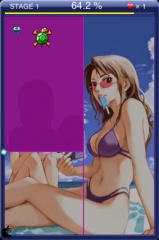 光る球を移動させながら陣地を獲得すると、下にある水着女性のアニメが表示されてゆきます。