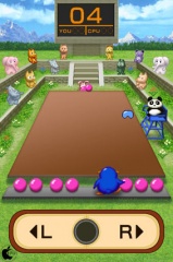キャラクターは、画面上の「L・R」ボタンをタップすると左右に移動し、中央の黒いボタンをタップすると、ボールを投げることが出来ます。