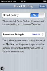 トレンドマイクロが、iPhone/iPod touch用Webセキュリティアプリ「Smart Surfing for iPhone and iPod touch」を、App Storeにて無料配付を開始していたので試してみました。