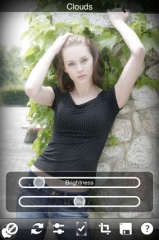 効果を選択すると、今度は、明るさ、コントラスト、キリヌキ、エンボスなどの編集作業を行なうことが出来るようになっています。