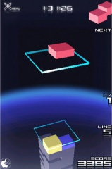 中央で3Dのブロックが回転していて、上部に表示されるブロックを落とし、下のブロックを消してゆくパズルゲームです。