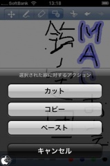 手書きの内容を選択し、ハサミのアイコンをタップすると、カット、コピー、ペーストを行なう事ができます。
