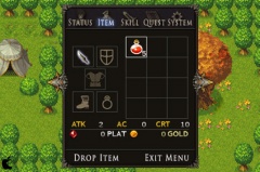 道具屋では、武器、防具、薬などが売られていて、自分のアイテムを売る事も出来ます。