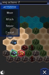 ヘクス(正六角形)の上に、兵隊や武器を配置し、敵に接近したらアクションメニューでアタックを選択して攻撃します。