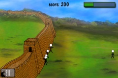 ゲームの内容は、襲来するマッチ棒人形に、壁を叩かせないように、指でフリックして高く放り投げ、地面に落として倒してゆくという単純なゲームです。