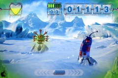 雪景色の中に出現する2種類のモンスターに、雪を投げて倒してゆきます。