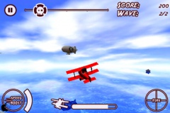 複葉戦闘機を操り、敵の船や飛行船を撃ち落とすゲームアプリです。